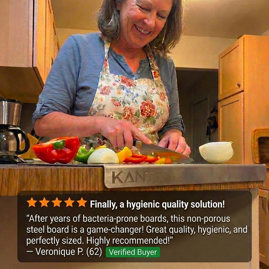 I work in healthcare and I understand how surfaces harbour bacteria. Non-porous stainless is the only material that makes sense for food prep in my opinion. This board finally brings that standard into the home kitchen.